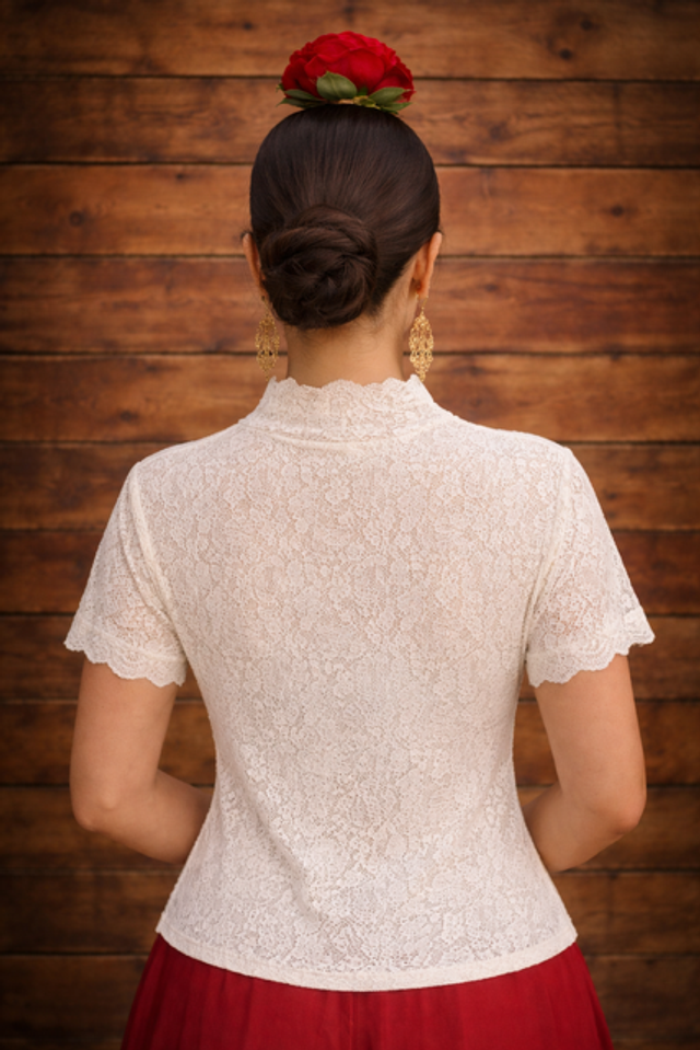 Sublimez votre silhouette avec ce top femme en dentelle blanche au style raffiné et intemporel. Sa coupe ajustée met en valeur la féminité, tandis que la dentelle délicate apporte une touche chic et sophistiquée. Parfait pour une tenue élégante, de jour comme de soirée.