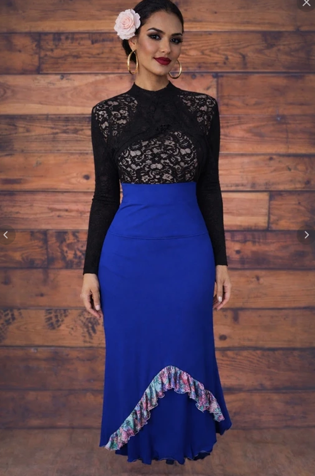 451 Taille M Jupe longue Flamenco Bohème Bleue