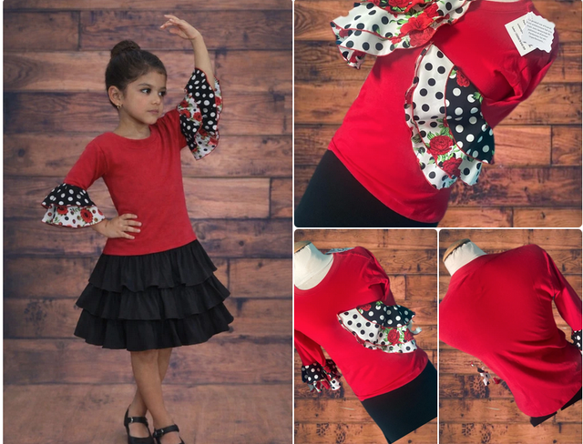 Top enfant 10 ans volants tissu crêpe pois fleurs