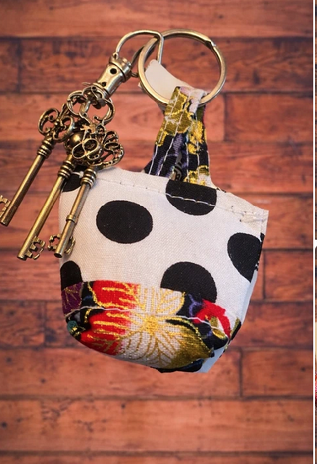 Petit accessoire plein de charme, ce petit sac porte-clés en tissu allie praticité et style. Son mélange de pois graphiques et de motifs colorés en fait un objet unique, facile à repérer dans un sac et agréable à utiliser au quotidien.