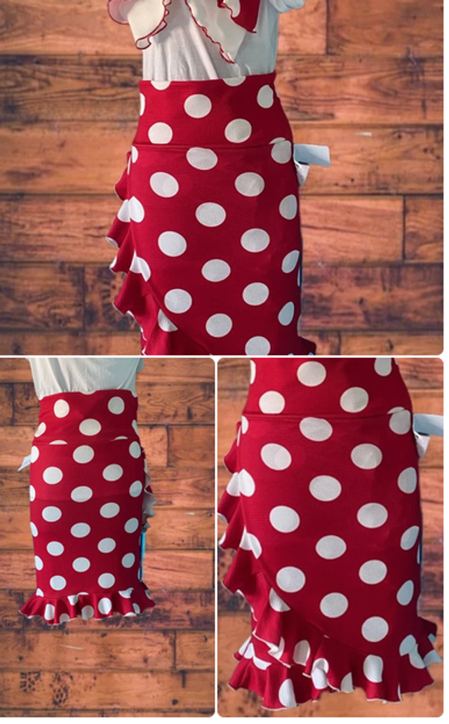 Surjupe flamenco à coupe portefeuille, conçue dans un tissu extensible pour un confort optimal et une liberté de mouvement idéale.